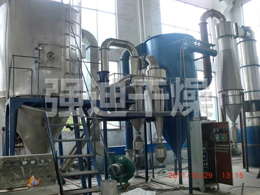 本機(jī)是利用高速離心式霧化器使物料分散成霧狀,與熱空氣充分接觸完成瞬間干燥,形成粉狀成品的干燥裝置。